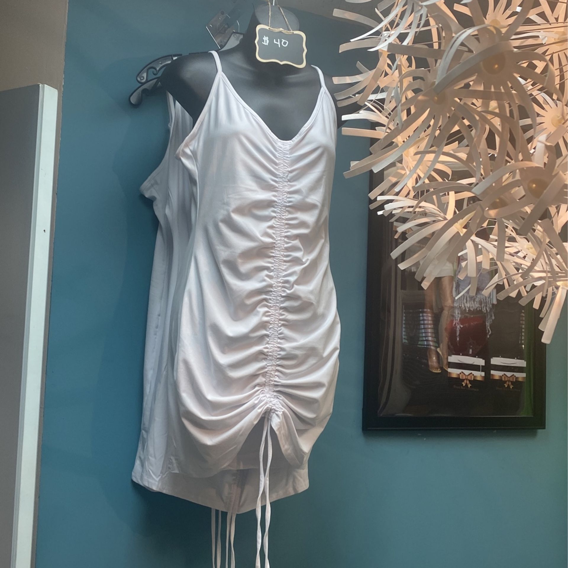 White Drawstring Scrunch Dress