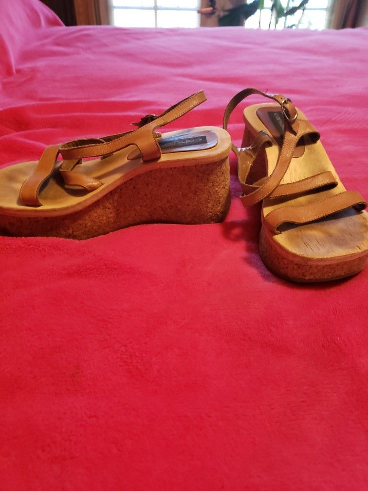 One Of A Kind Candies Leather, Wood & Cork Heels. Size 7.5