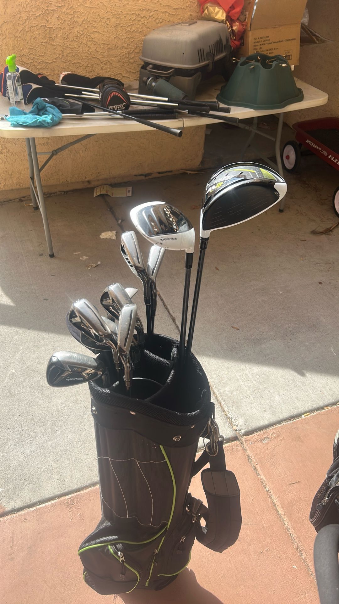 Selling a tailor-made golf set with bag and two graphite shaft, regular shaft irons 4-5 -6-7-8-9 -pw - aw M2 Taylormade driver driver is regular shaft 9.5 Shaft is also graphite Comes with a three wood graphite shaft burner You’re also getting a Odyssey white hot RX putter clubs are in really good condition. No sky marks on driver. Perfect for beginner or an advanced player.