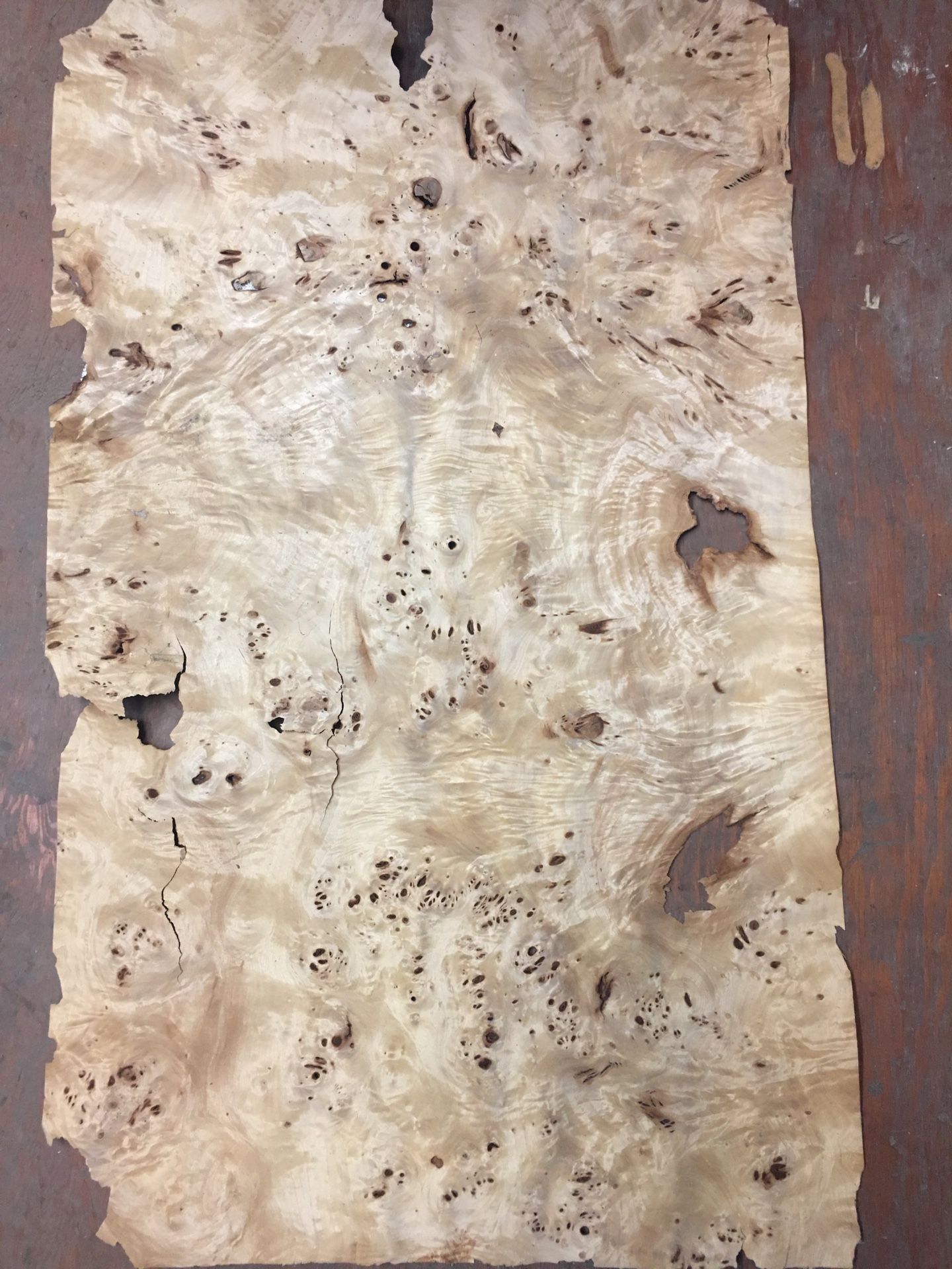 Exotic woods and veneers. Birdseye maple blood wood