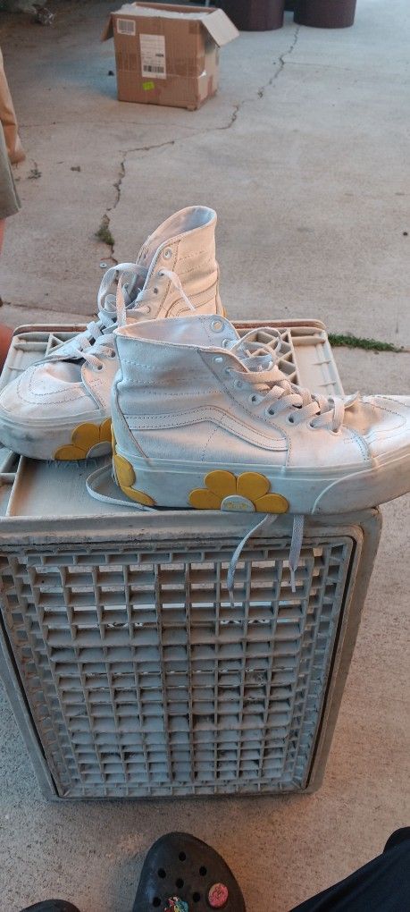 Vans Denim Shoes White with yellow flowers Size: Men - 6 // Women - 7.5 There is little dirty and and torn