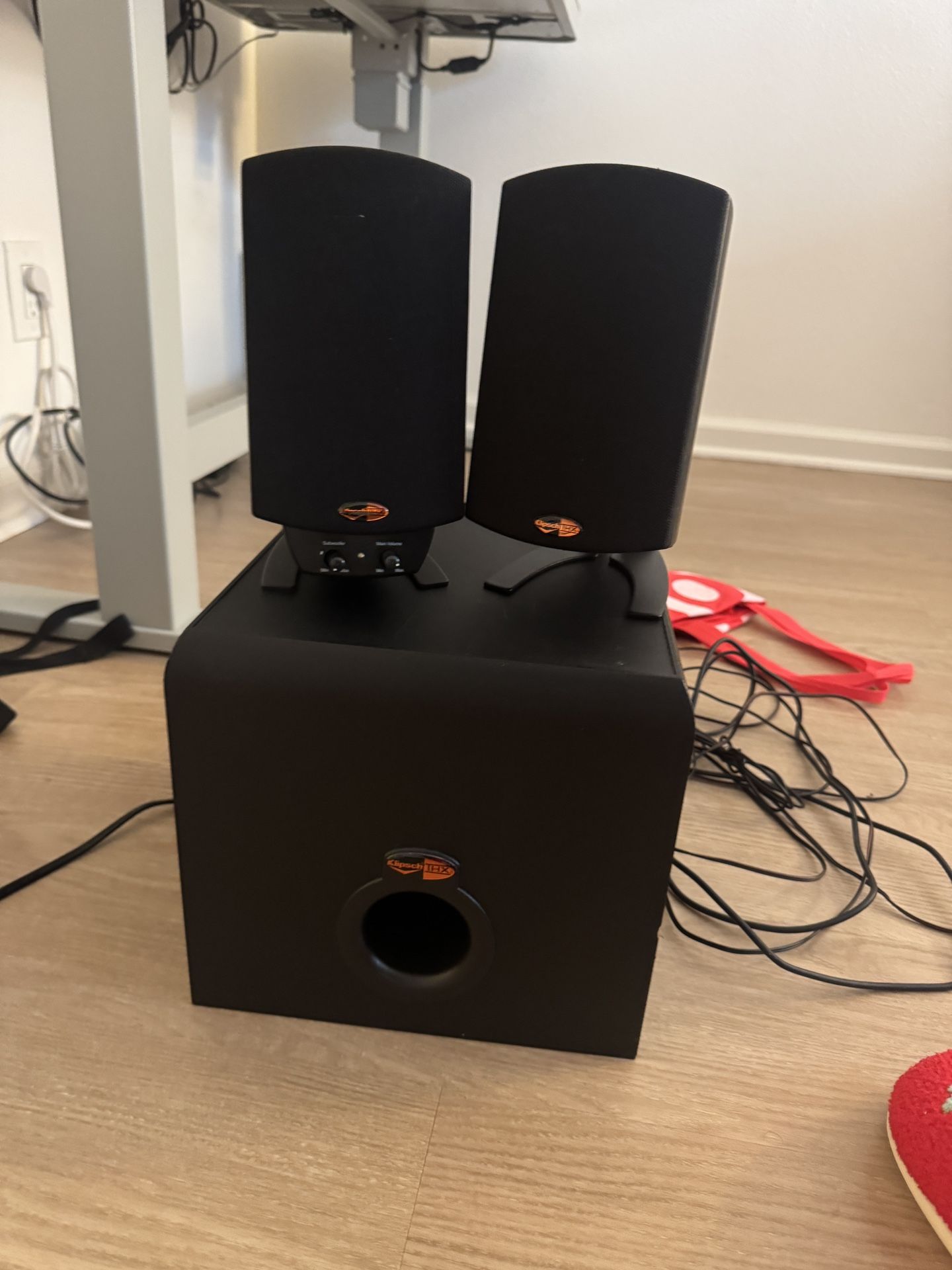 Brand new condition klipsch computer speakers. Subwoofer and two speakers. All cords included.