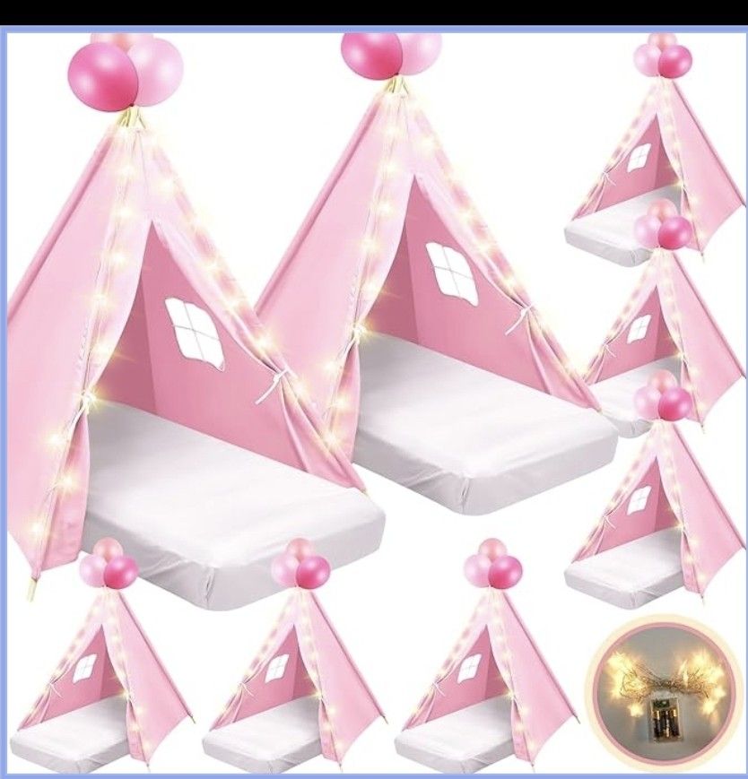 NEW OPEN BOX 8-Pack Kids Sleepover Teepee Party Set (Complete Kit) Retail: ~$389 Description: Brand new, unused 8-Pack Kids Sleepover Teepee Party Set — perfect for birthdays, slumber parties, and playdates. This is a complete setup for 8 kids. Includes: 8 teepee tents with pine poles 8 inflatable air mattresses 8 fitted sheets 8 star light strings Stylish, matching design creates a cozy “mini house” look. Durable cotton fabric, easy setup, and great for indoor fun. Why this is a deal: Retail is ~$389 — priced at $125 for quick sale. Pickup only | Cash only | Price firm