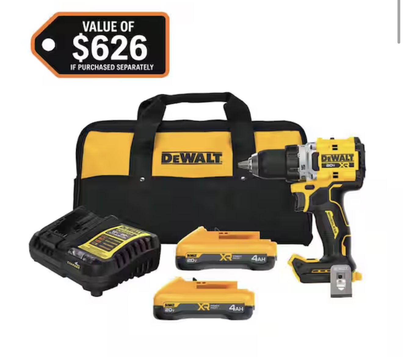 DEWALT 20V XR Lithium-Ion Cordless Brushless 1/2 in. Drill/Driver Kit with (2) 4.0 Ah Batteries and Charger @DEW-57
