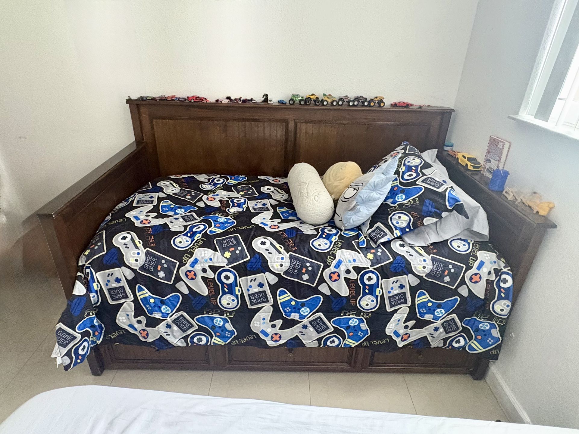 Bed Twin Doble / Cama doble Cama inferior con ruedas para facilidad de movimiento. Solo incluye ambas camas y el colchón inferior. Lower bed with wheels for ease of movement. It only includes both beds and the lower mattress.