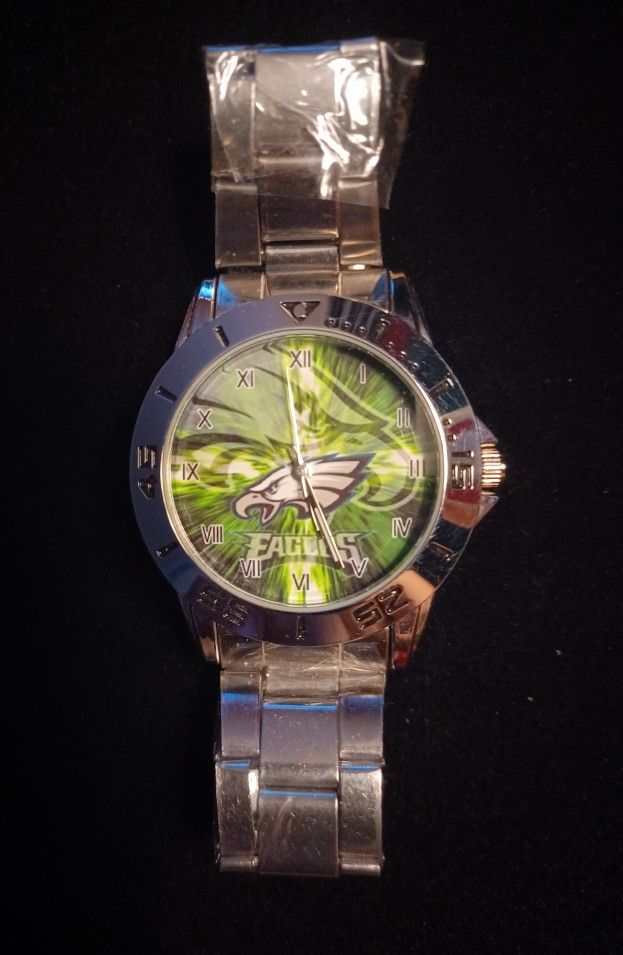 This is a new Philadelphia Eagles wrist watch for a man very beautiful detail this is quartz timing movement make a great gift for Christmas or anytime for the Eagles fan in your life
