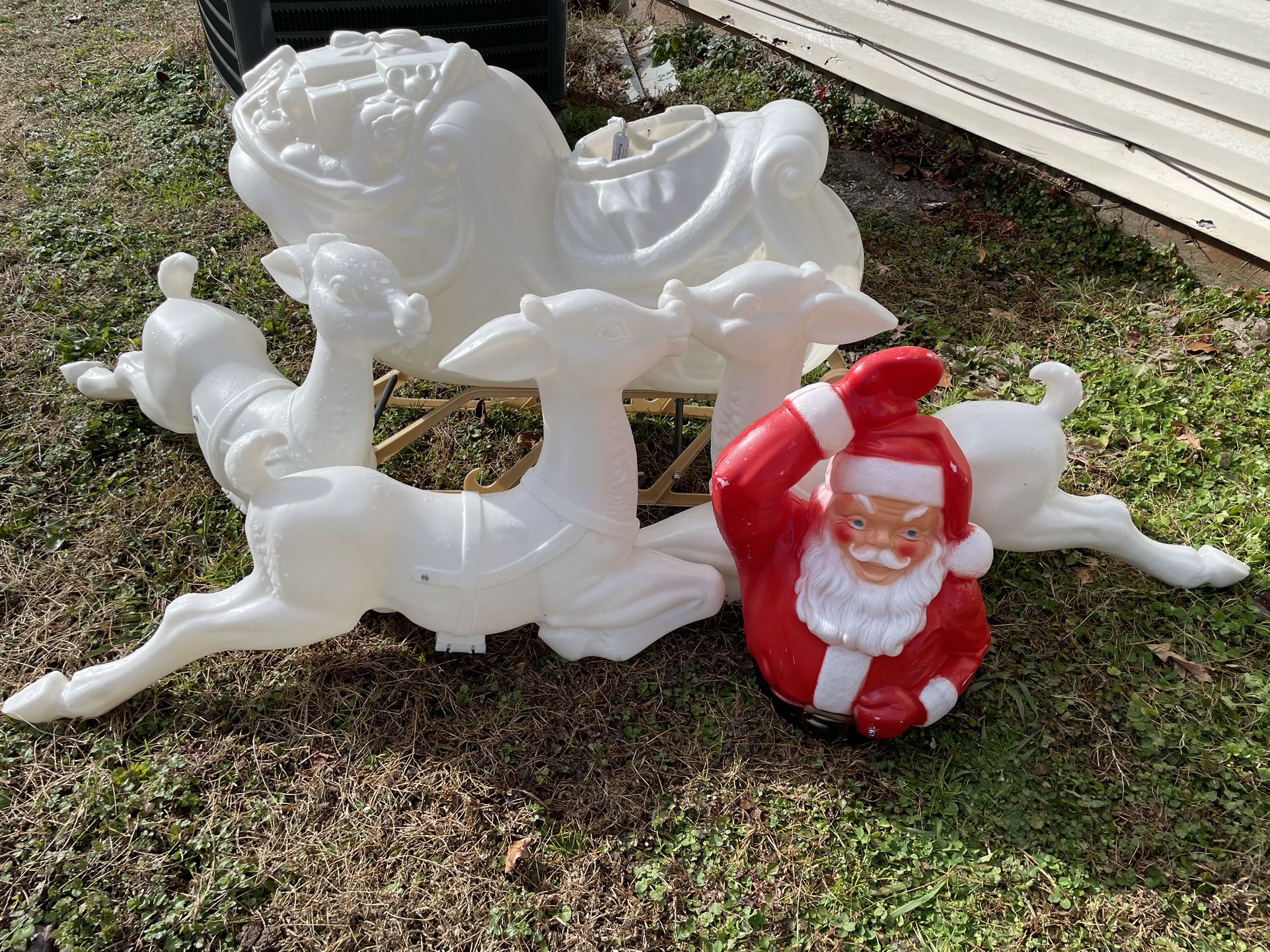 When Empire went out of business in the early 2000’s they sold off what stock they had to the public. This set came from the factory like this and it’s been sitting in my shed forever. Deer and sleigh unpainted, Santa came painted. I have all original light cords and original reigns and metal stands. Molds have no cracks or damage but may be a little dirty from storage. Pick up in Charlotte NC.
