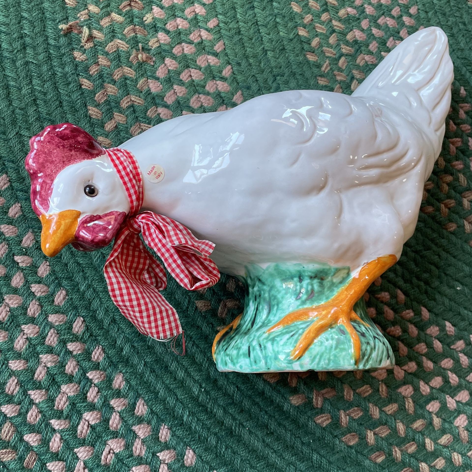 This is a ceramic/terra cotta chicken. In great shape, no chips or cracks. Great decorative piece. Measures approx 13 inches high, 17 inches long. Great for a French country kitchen design.