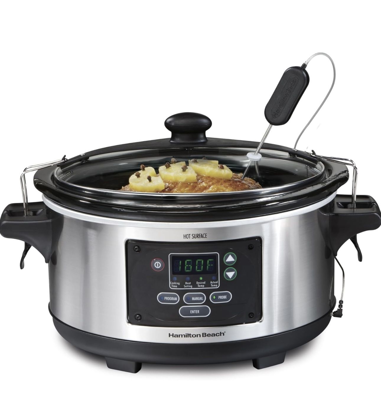 Hamilton Beach Portable 6 Quart Set & Forget Digital Programmable Slow Cooker with Lid Lock, Temperature Probe, Dishwasher Safe Crock & Lid, Stainless Steel (33969A) Brand new not in box