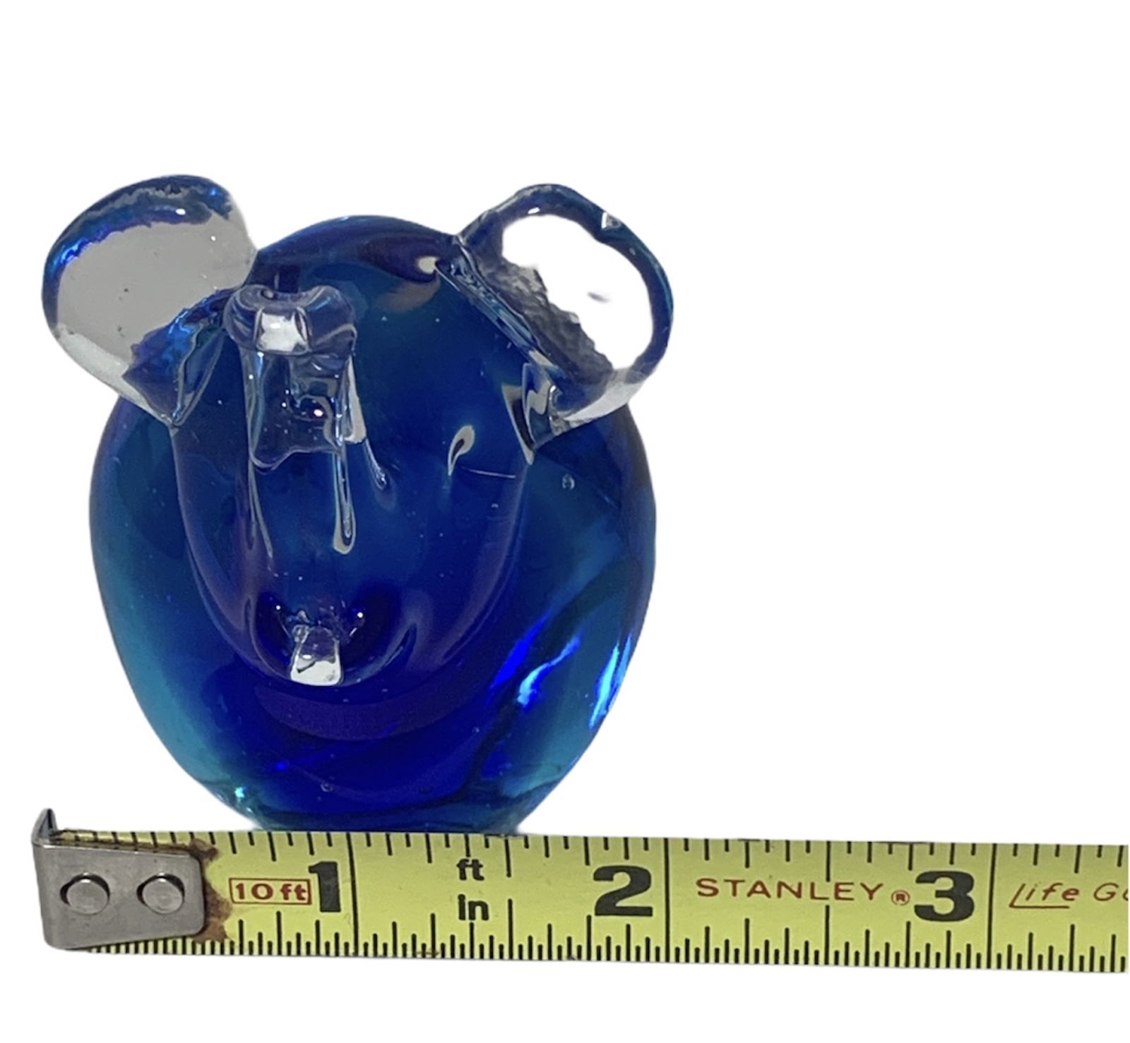 Murano Style Art Glass Elephant Figurine Blue, light blue & Clear Paperweight This elephant has his trunk up for good luck. Some nicks around base please see photos. Please see our other items listed. We have other figurines. Thank you, GG