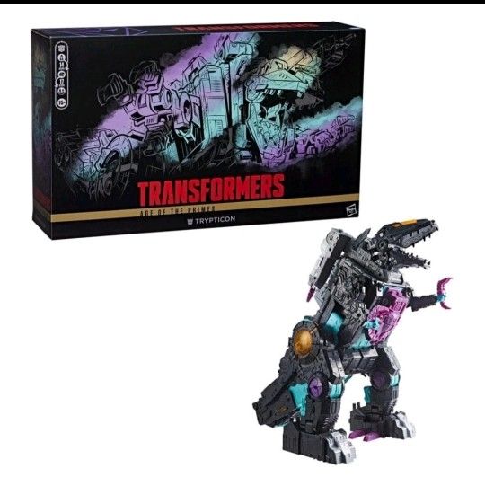 Brand New, Factory Sealed Transformers: Age of the Primes – Trypticon This is the massive Titan-class Decepticon Trypticon, one of the most sought-after large Transformers ever released. Brand new / never opened • Factory sealed box • Authentic Hasbro Transformers release • Titan-class scale (HUGE figure) • Transforms between Dinosaur Mode, Spaceship Mode & Base Mode • Includes Full-Tilt mini figure • Incredible detailing and articulation • Highly collectible & hard to find