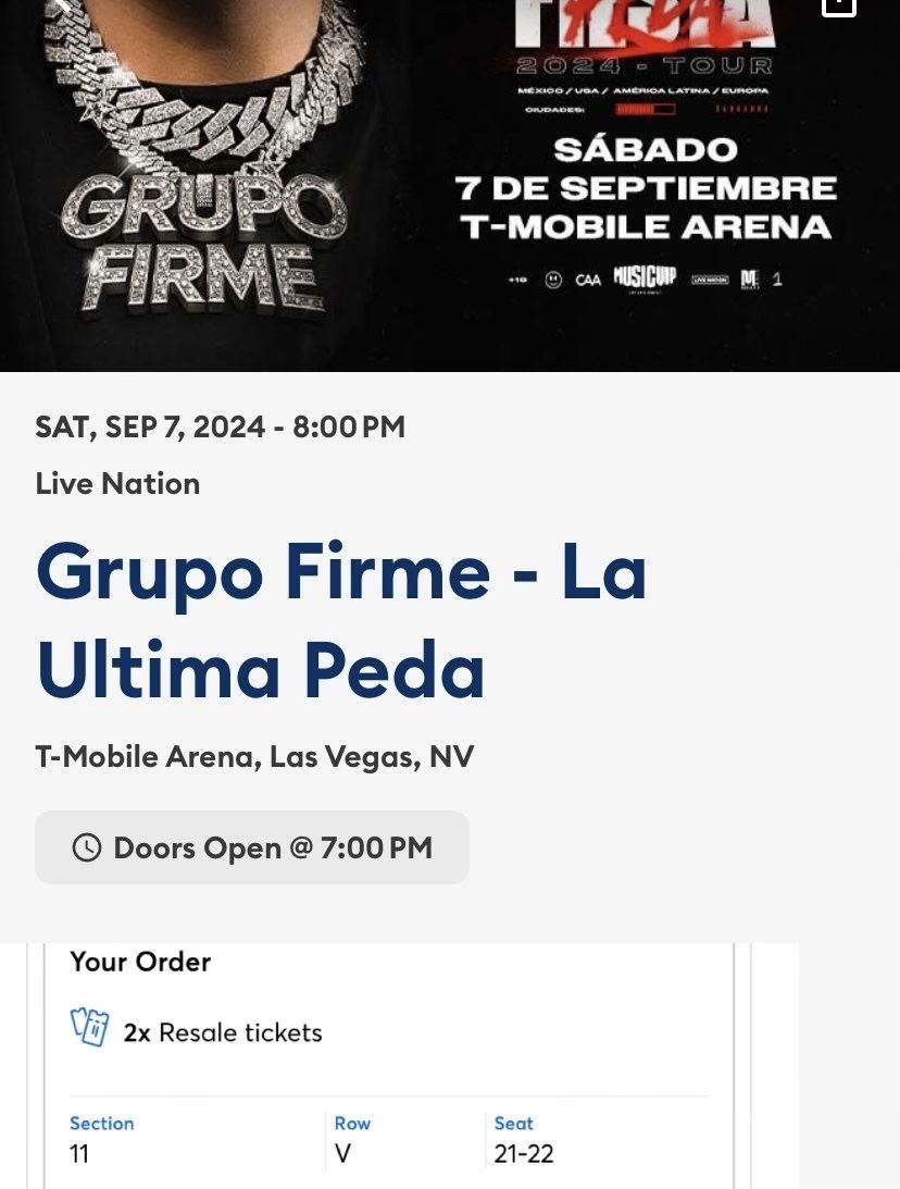 Grupo Firme tickets $500 for both Sept 7th Las Vegas Section 11 seats 21-22