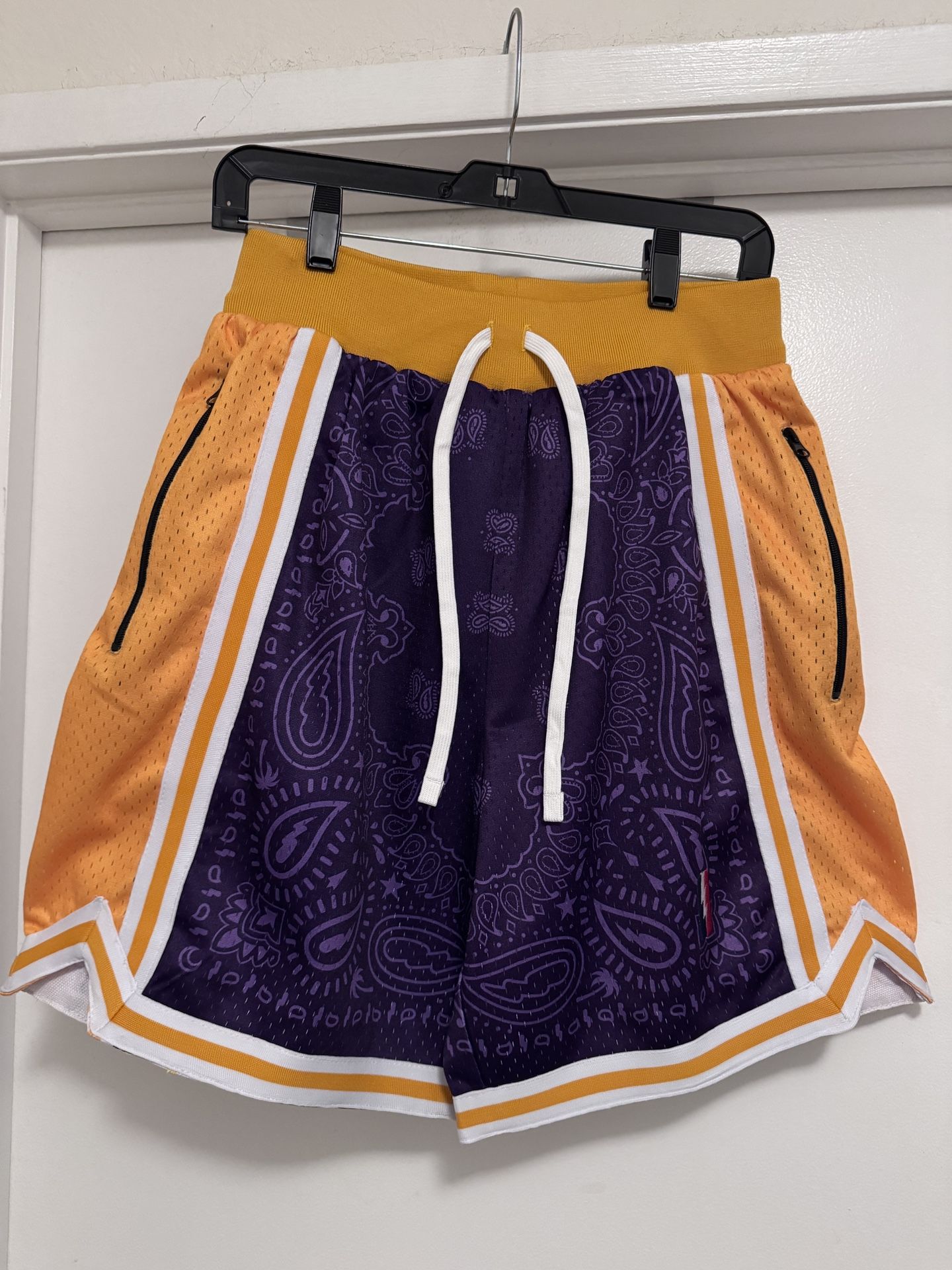 Collect + Select Los Angeles Lakers/Kobe Bryant tribute LAKERGANG V2 swingman shorts. Size medium, see the posted size chart for dimensions. Lightly used, in great condition. High quality, has 2 zippered side pockets.