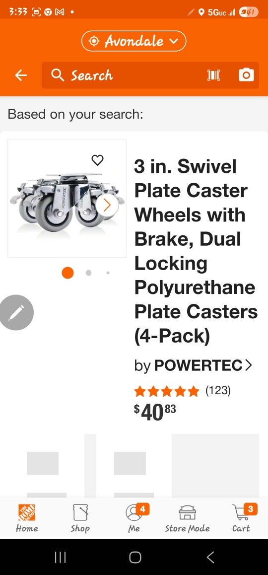 POWERTEC Swivel Stem Caster Wheels with Brake, 3 Inches, Pack of 4
