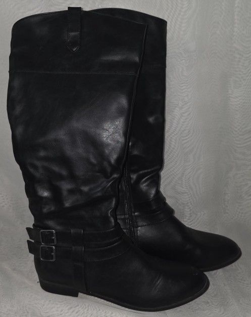 Wonderful condition! Route 66 Women Black Size 10 Knee High Boots Side Zips Avenger