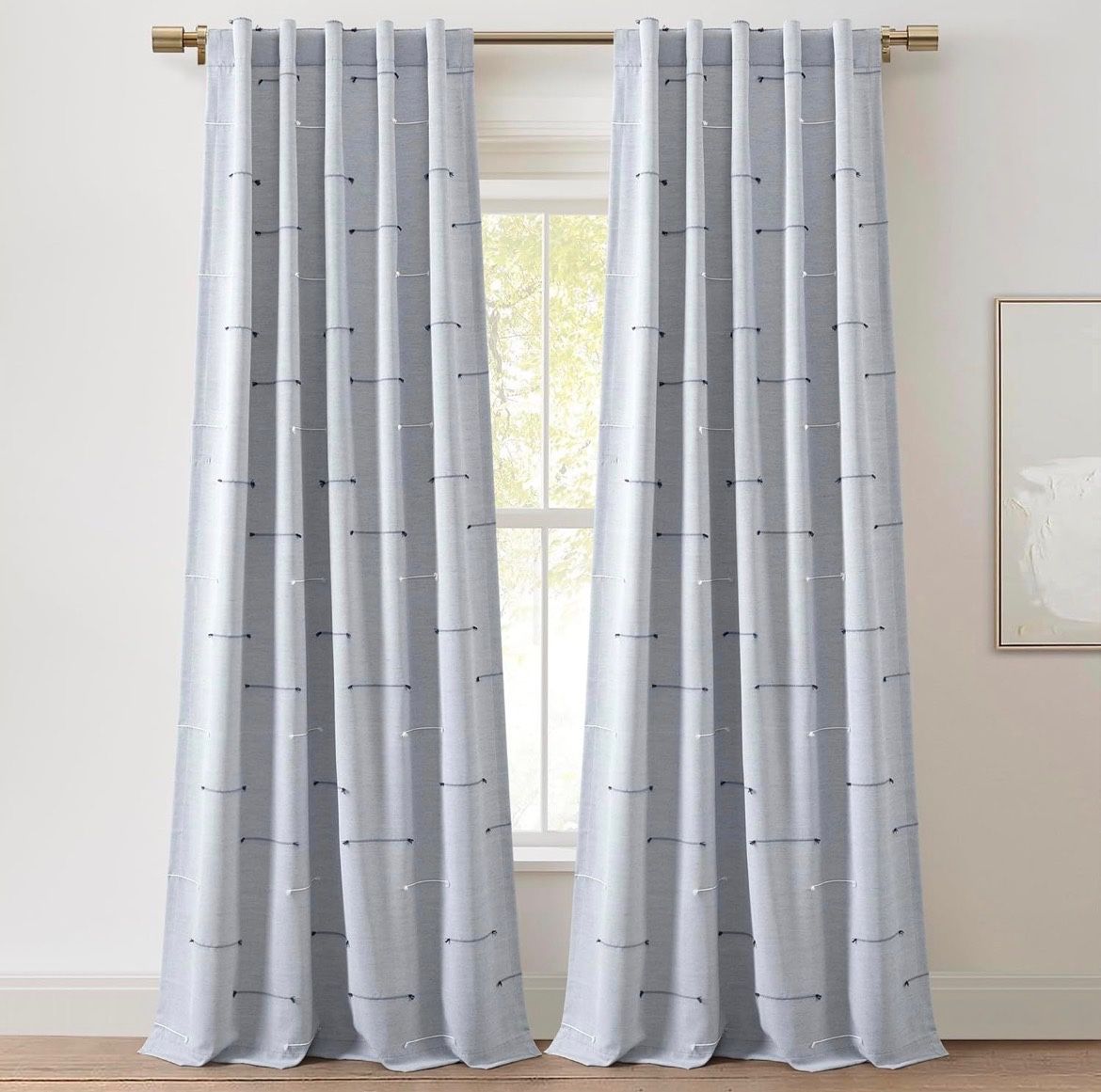 Lush Decor Boho Stripe Clip Jacquard Window Curtain Panels Pair 42" W x 84" L Blue & Navy - Blue Curtains for Living Room - Modern Bedroom Curtains Ne