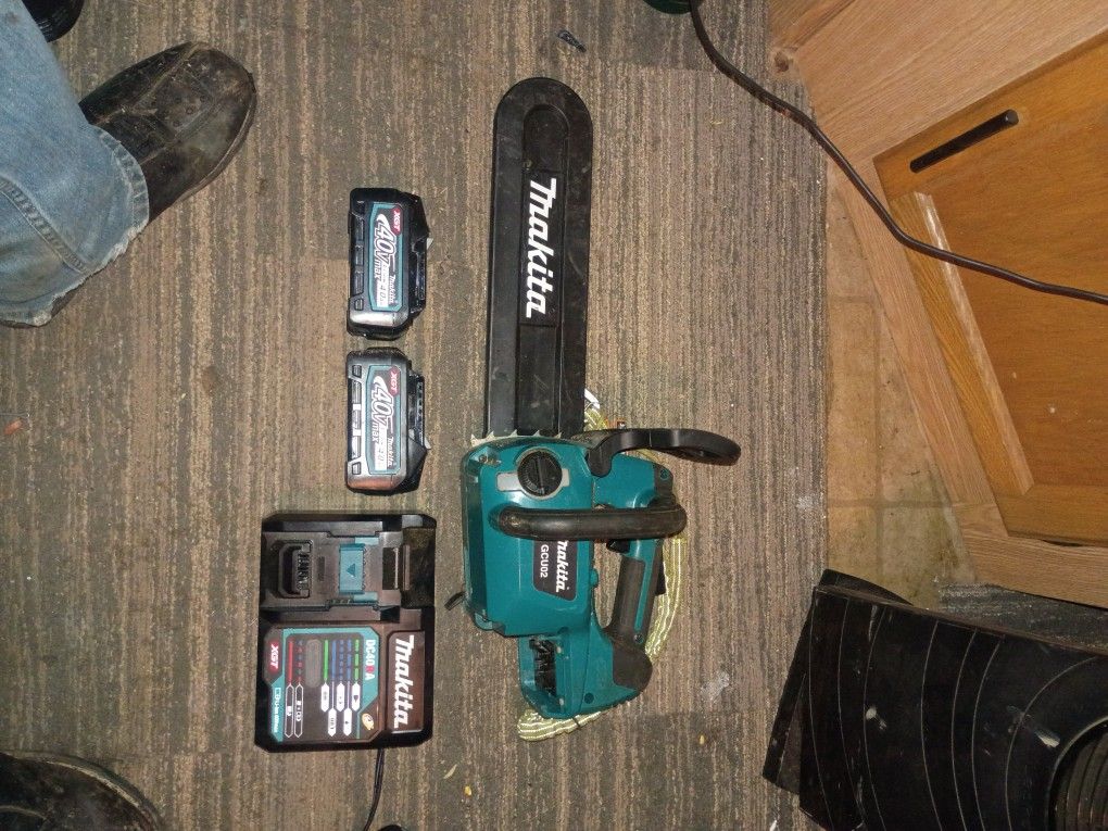 Makita XGT 40v Top handle Chainsaw, Plus TWO 40v xgt Batteries And Charger. Similar setup (saw, charger, ONE battery) currently selling for $620-$650 plus tax. This is an inexpensive way to get yourself into the Makita 40v lineup.