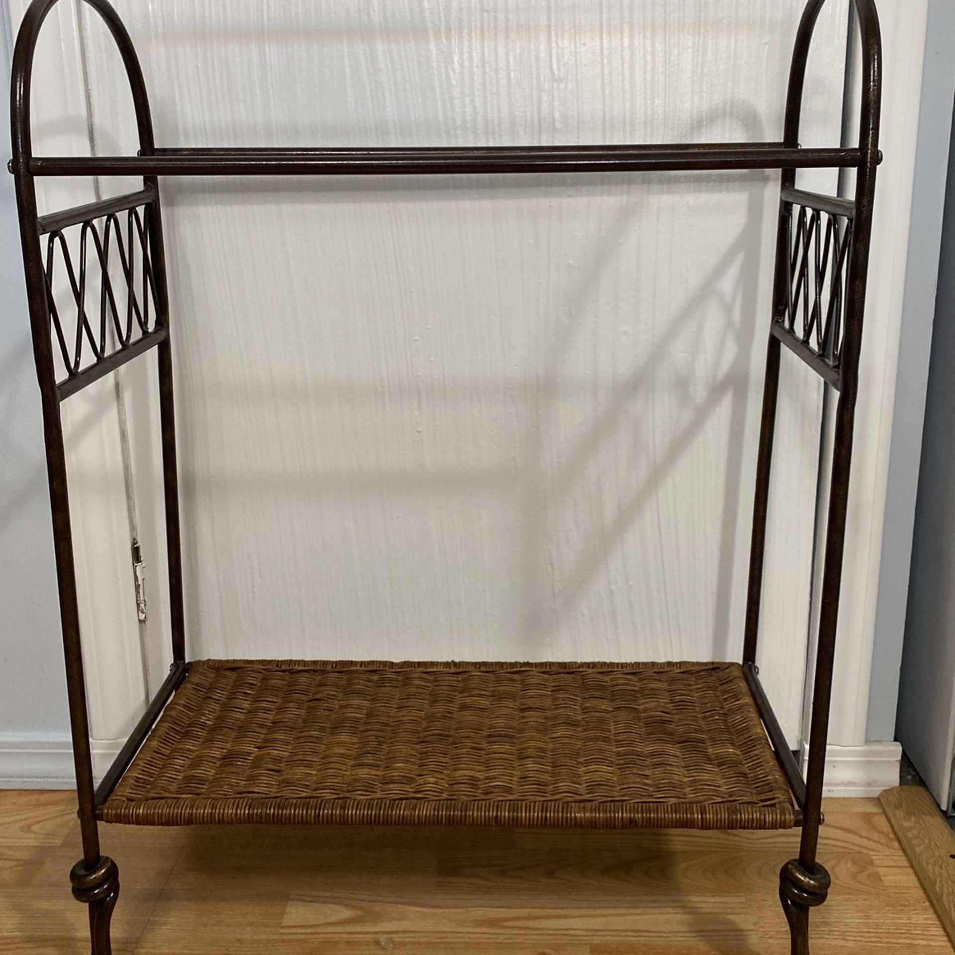 In great condition, metal and wicker blanket stand. Wicker in perfect shape, no damage. 24 L 13 W 30 H $35