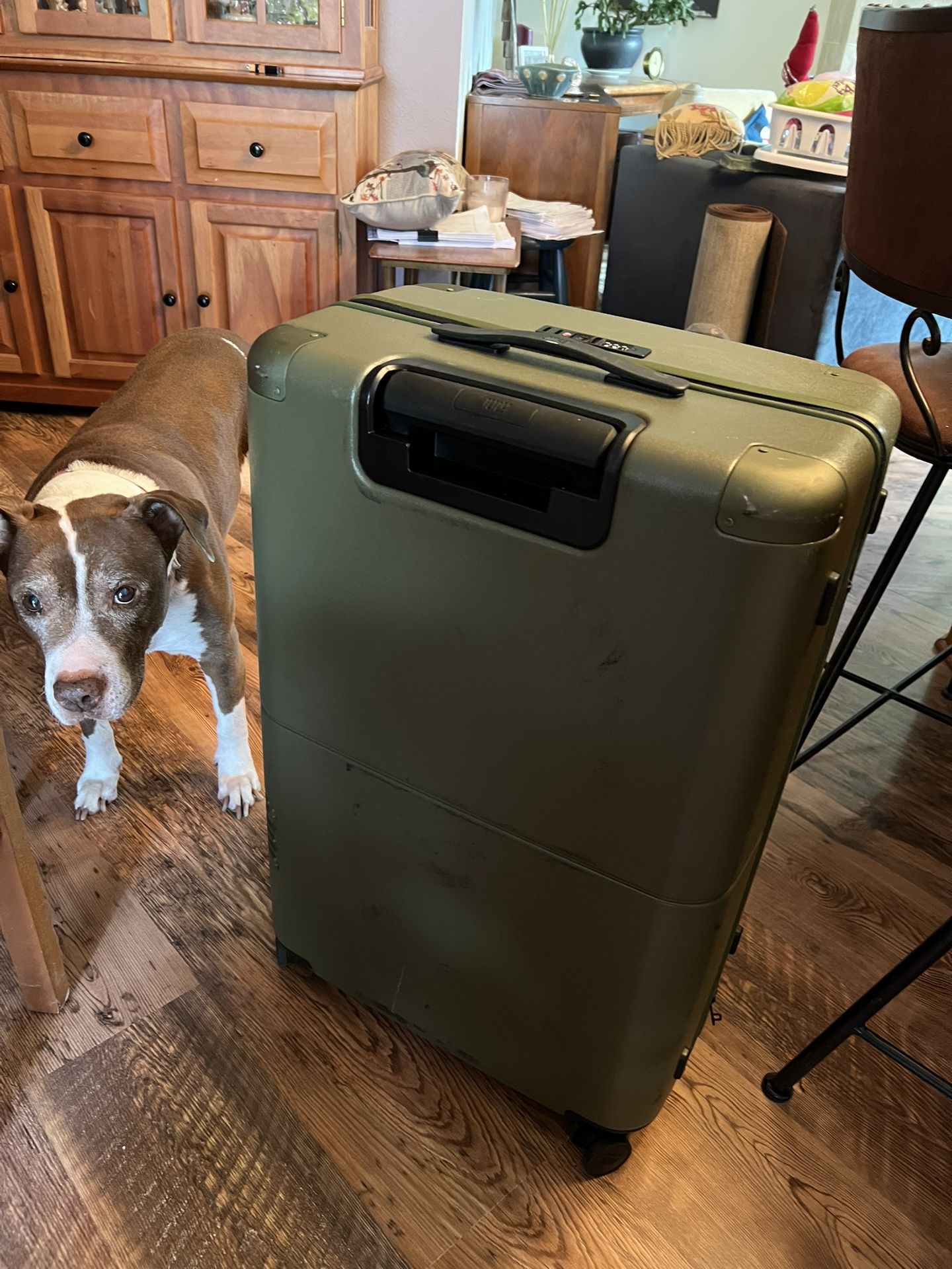 Large suitcase made for long trips or carrying a lot of stuff! Quality brand. Locking mechanism doesn’t work, which is reflected in the price. Zipper works well!