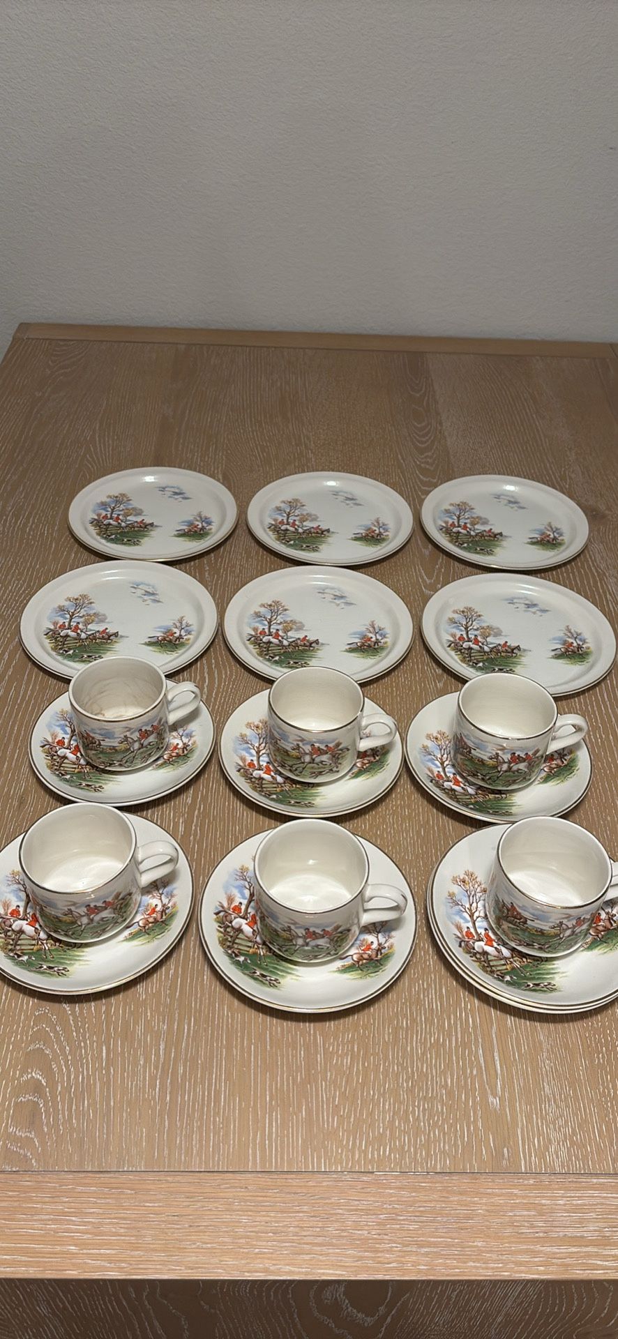 Arklow from Ireland Fine bone china 2 big plates have some cracks 2 tea cups have some damage All shown in pictures