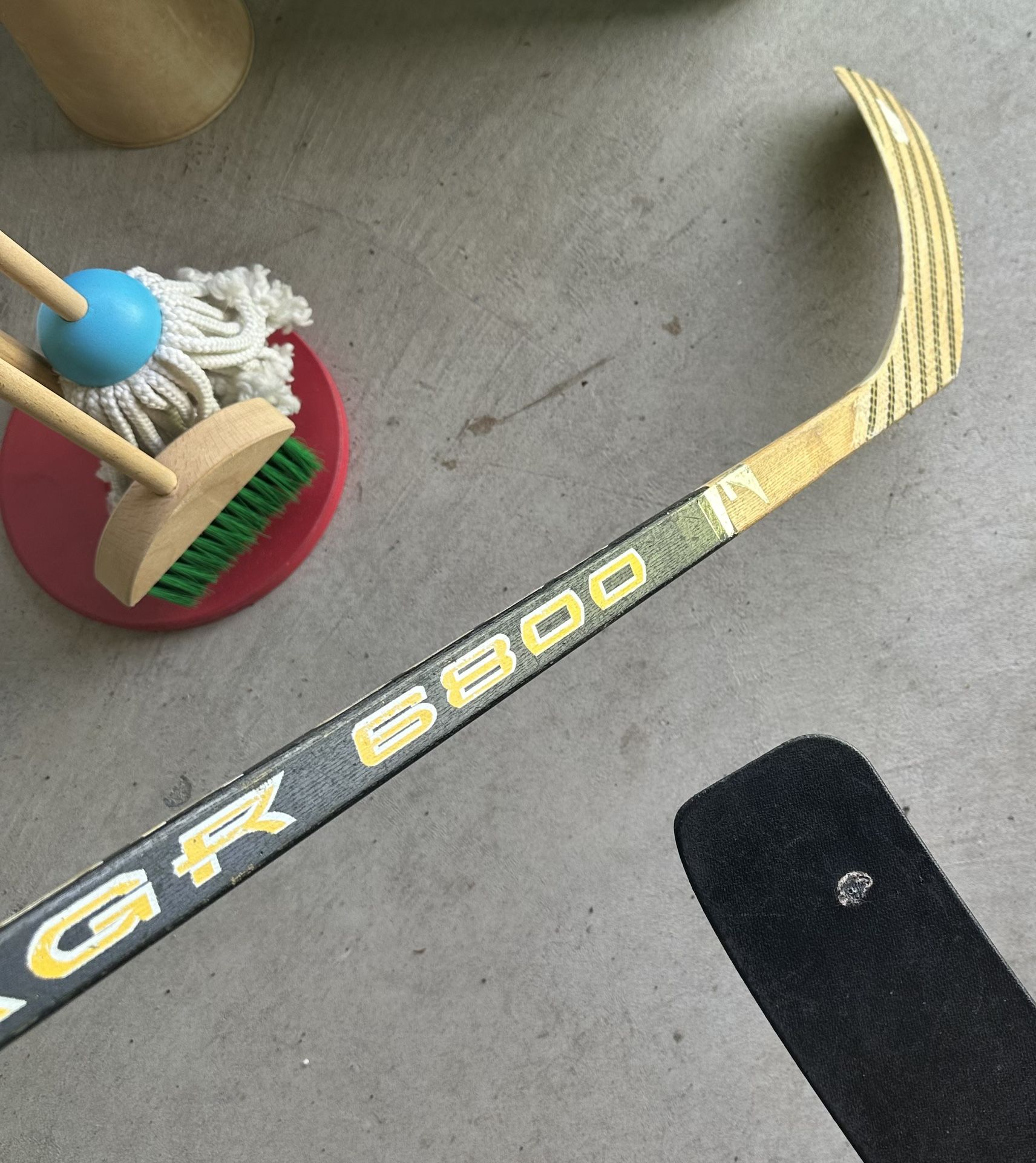Vintage wooden-core hockey stick, model Jagr 5800 by KOHO. Great for collectors or recreational play. Has some light wear consistent with age and use, overall solid condition. delivery — $1 per mile