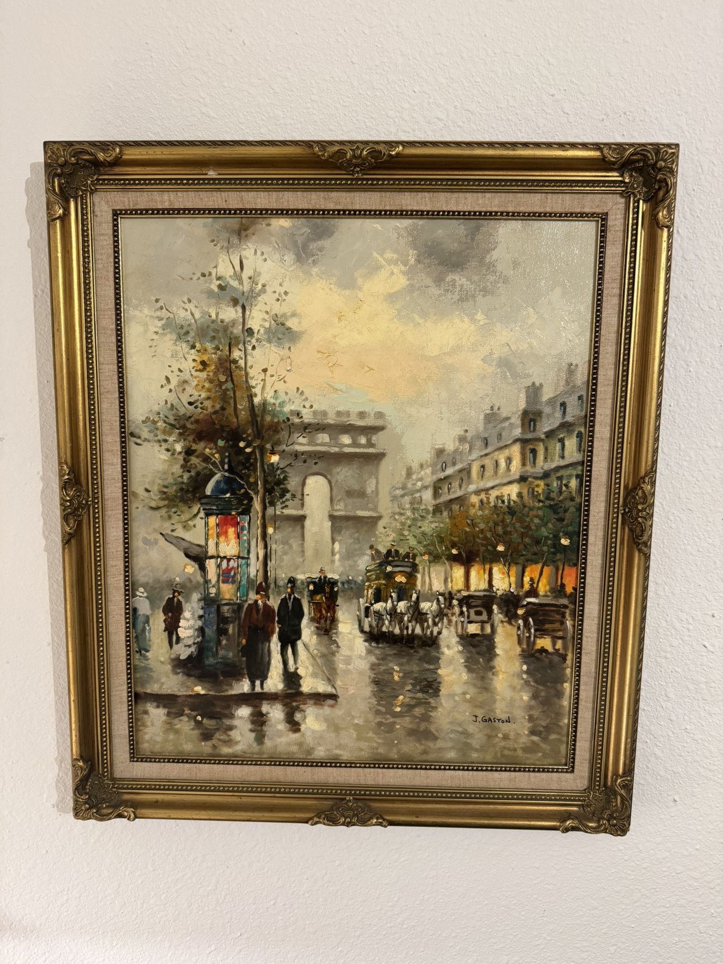 Jacques Gaston Moreau Oil Painting 30”x26” Champs Elysses After Rain Circa1950