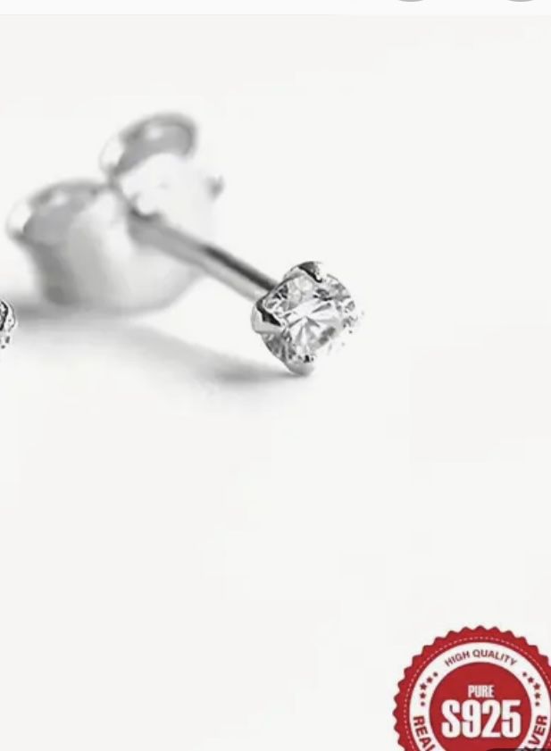 See Photos. 925 Silver Single Diamonds .03. Elegant Style For Women. Girls Delicate Gifts Versatile Earrings