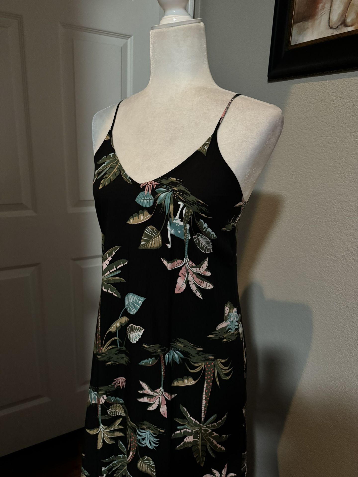 NWT Old Navy Women’s Maxi Dress Tropical Vacation Jungle Palms Maxi Spaghetti Strap Black/Multi Sz XS