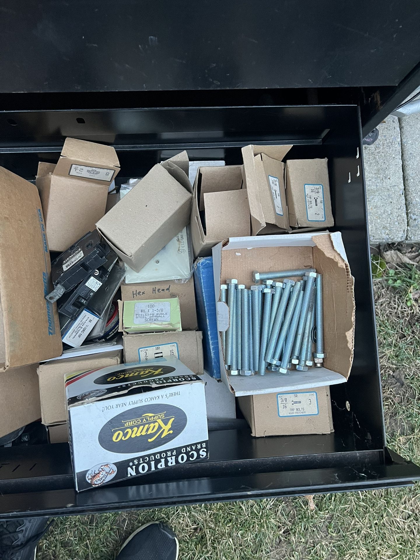 Lots of misc. stuff. Bolts , nuts , washers , covers ,, all kinds of stuff. Good for someone who sells individual items or even personal use. Selling cheap and comes with the cabinet 🗄️. Make me an offer for all.