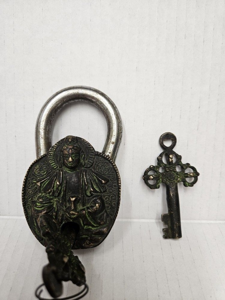 The Tibetan Door Lock is a traditional and culturally-inspired padlock designed for securing doors or belongings. With its intricate design and unique style, this lock adds a touch of Old World charm to any space. Made with high-quality materials and craftsmanship, this Tibetan Door Lock is both functional and aesthetically pleasing, making it a valuable addition to any lock and key collection.