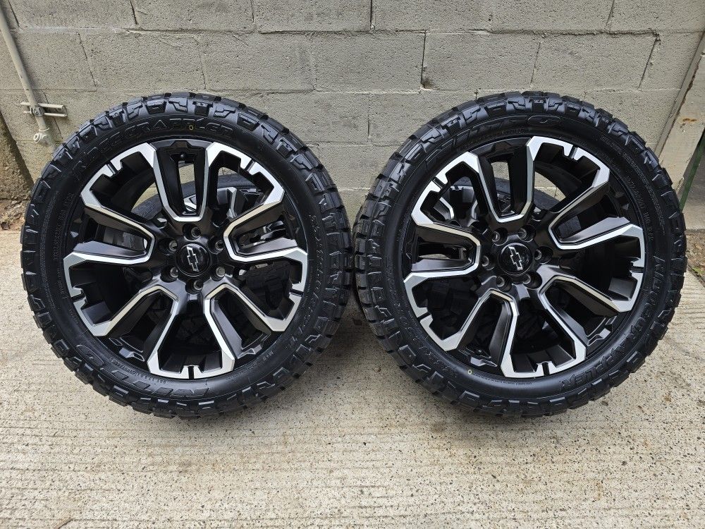 Factory GM Option Wheels (New) 33x12.50R22 Nitto (New) 6x139/6x5.5 With TPMS Sensors Fits Chevy Silverado 1500, Tahoe, Suburban, GMC Sierra, Yukon, Yukon XL, Sierra Denali 1500, and Cadillac Escalade
