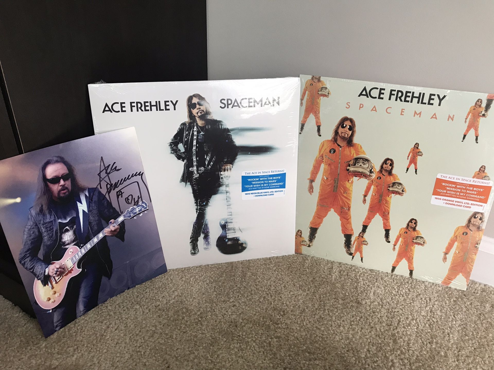 I’ve packaged the ultimate Ace Frehley Experience. Included as pictured: Spaceman LP - 180G Neon Blue Vinyl Spaceman LP - 180G Orange Vinyl Signed photo by the Spaceman himself!