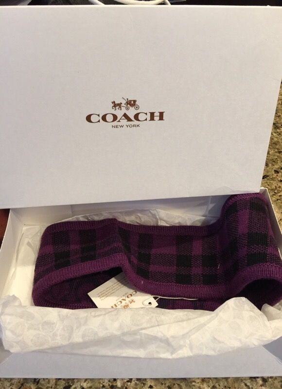 Reversible ear warmer. Originally $95. Tags still on. Purple with dark purple C's and the other side is a plaid print. Has box and would be a great gift or for personal use!
