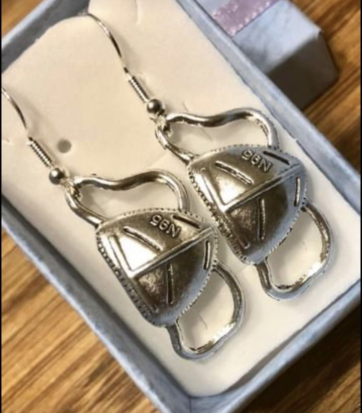 Absolutely Adorable Mask N95 Earrings Silver Tone Dangle Awesome Keepsake Hypoallergenic Hooks Nickel and Lead Free