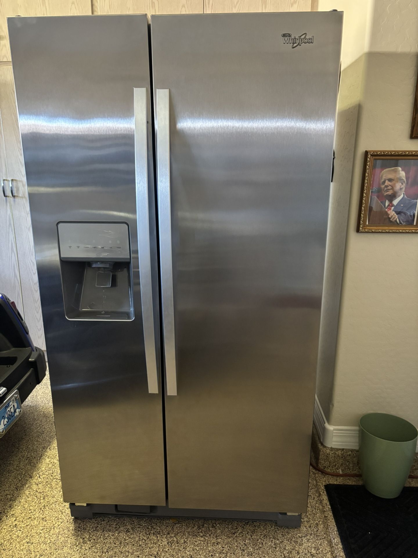 Whirlpool side-by-side refrigerator 25 cubic feet. 35” wide Only 4 years old