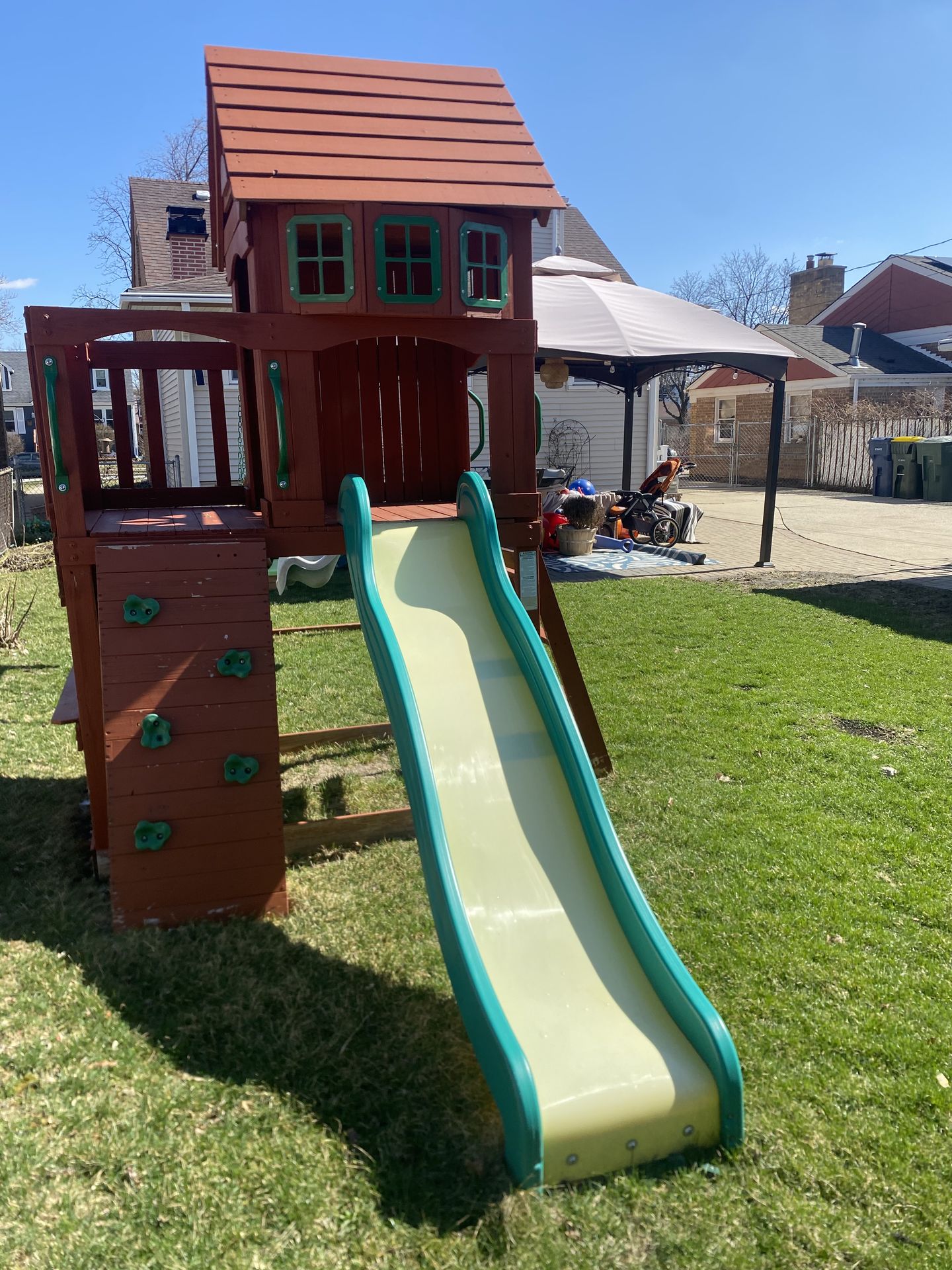 In good condition, swings & slide included!