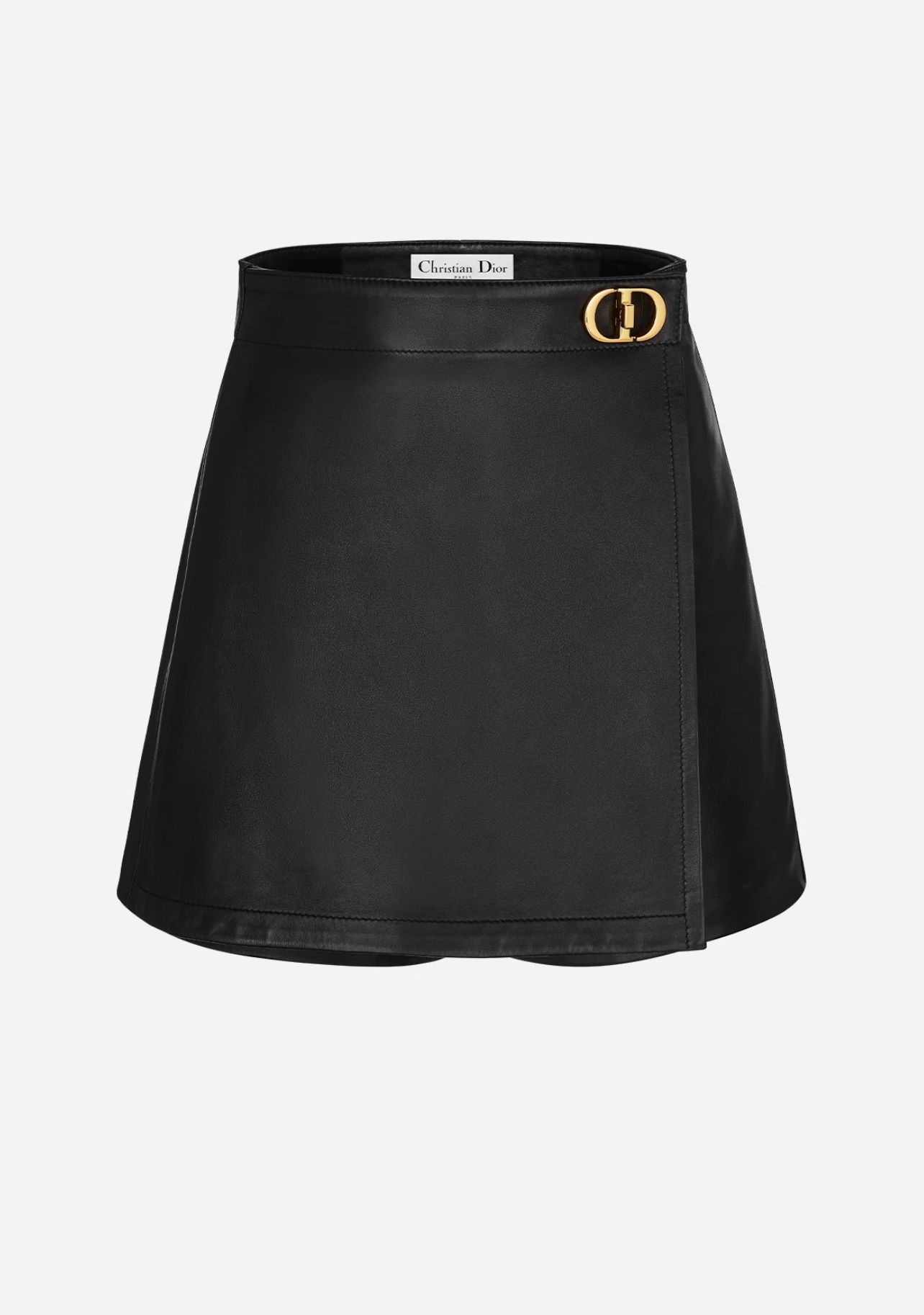 DESCRIPTION The skort is both modern and timeless. Crafted in black smooth lambskin, the design features a corolla cut embellished with a gold-finish 'CD' buckle at the hip and a rear patch pocket. The shorts will lend the finishing touch to a solid or patterned blouse. Thin waistband with gold-finish 'CD' buckle Side zip closure Black lining 100% leather Made in Italy