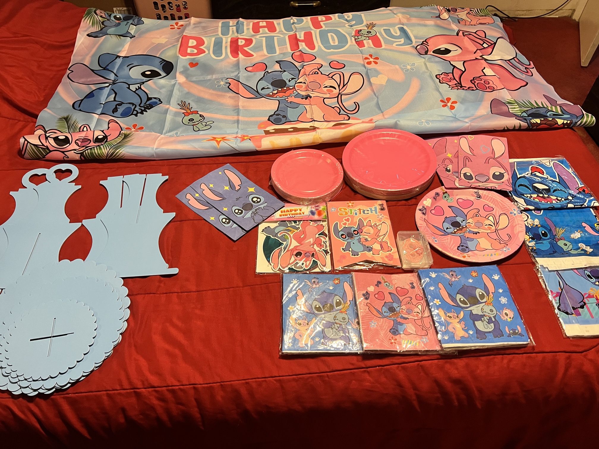 Very Cute Stitch & Angel Themed Party Bday Supplies! (2) Banners (2) Blue cupcake holders, napkins, plates, (3) tables covers, (4) candy bags & other decorations Northeast Area