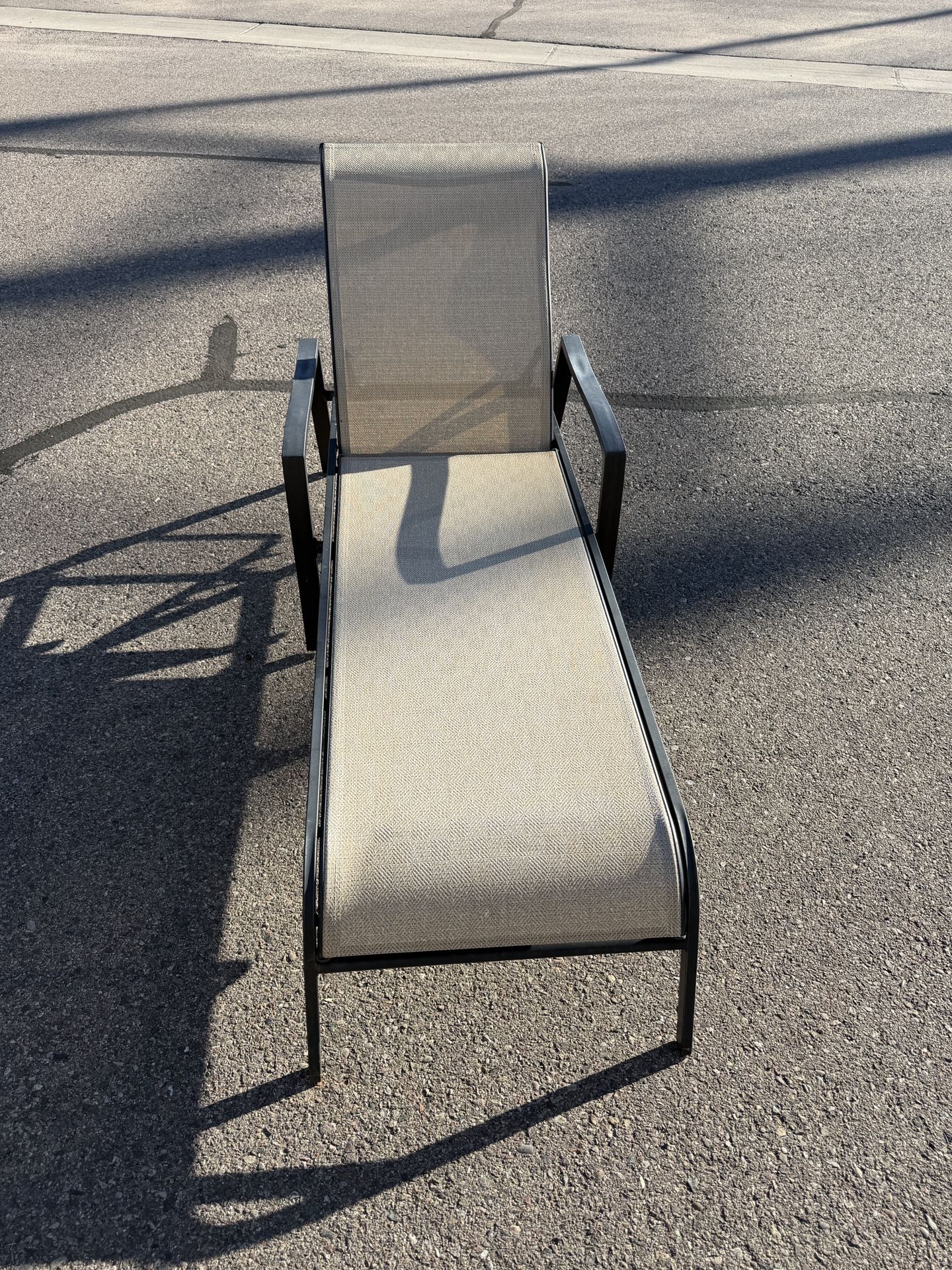 Relax in style! This outdoor chaise lounge features a durable black metal frame and a breathable tan mesh sling seat that’s perfect for soaking up the sun. Great for poolside, patio, or backyard lounging. ✔ Good condition ✔ Comfortable mesh fabric ✔ Strong metal frame ✔ Ready to use Pick up in Phoenix. First come, first served!