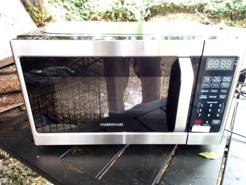 Brand New Unused Excellent Working Condition Farberware Countertop Microwave 700 Watts, 0.7 Cu. Ft. - Microwave Oven With LED Lighting and Child Lock - Perfect for Apartments and Dorms - Easy Clean Stainless Steel. No Damage Fully Functional.