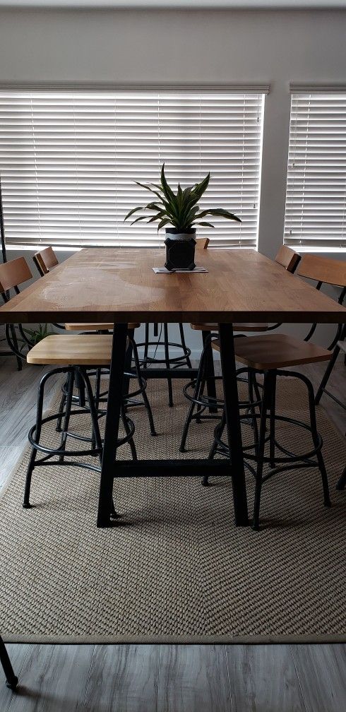 Set of bar height metal table legs. Custom ordered 36" tall, (legs only, table top not for sale) $ 125 6 - bar height wood swivel chairs $50 (for all chairs, one needs some repair) $150 for both No holds, no trades, pickup only and cash only. If its posted, its still available.