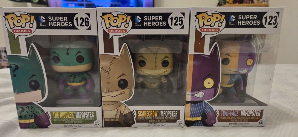 Scarecrow $9 Twoface $9 Riddler $12 or all for $30