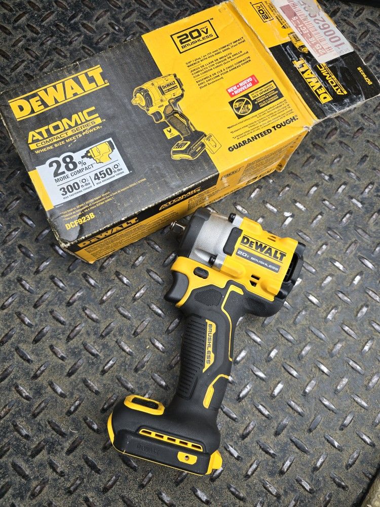 Great condition Tackle a variety of projects using the ATOMIC 20V MAX* 3/8 in. Cordless Impact Wrench with Hog Ring Anvil. This high-performance power tool packs up to 300 ft-lbs of max fastening torque and up to 450 ft-lbs of max breakaway torque in a compact design that maneuvers easily in tight spaces. This unit was engineered to deliver enhanced performance and usability in a variety of fastening applications with 4 speed settings to choose from, a Timber Screw mode, and a Precision Wrench™ control feature. Continue working in dimly lit spaces with this Cordless Impact Wrench's integrated LED which provides enhanced visibility in dark areas. Battery not included. 733 b11