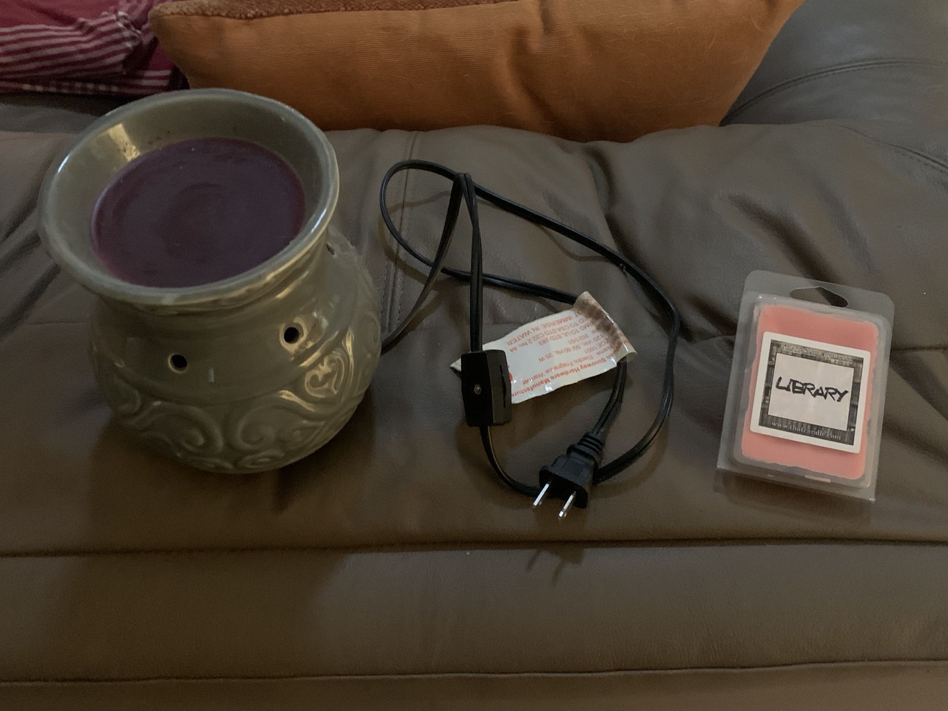 Ceramic/Pottery Green Wax Warmer Electric Corded W Free Wax Sample Measures: 6 1/4” tall X 5” wide X 4.5” deep Good condition no flaws works good Pickup in Inverness Florida 34450