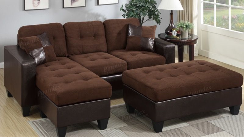 New in box, never used. Align your living space with versatility and class with a multi-unit sofa sectional that lets you create the living room you and your family's lifestyle. The collection of contemporary plush units feature accent tufting and pillows. * Make it a bed putting pieces together* Reversible sectional sofa: 81" x 60" x 34" H XL-Cocktail Ottoman: 45" x 26" x 19" H Delivery a available, hablamos Español
