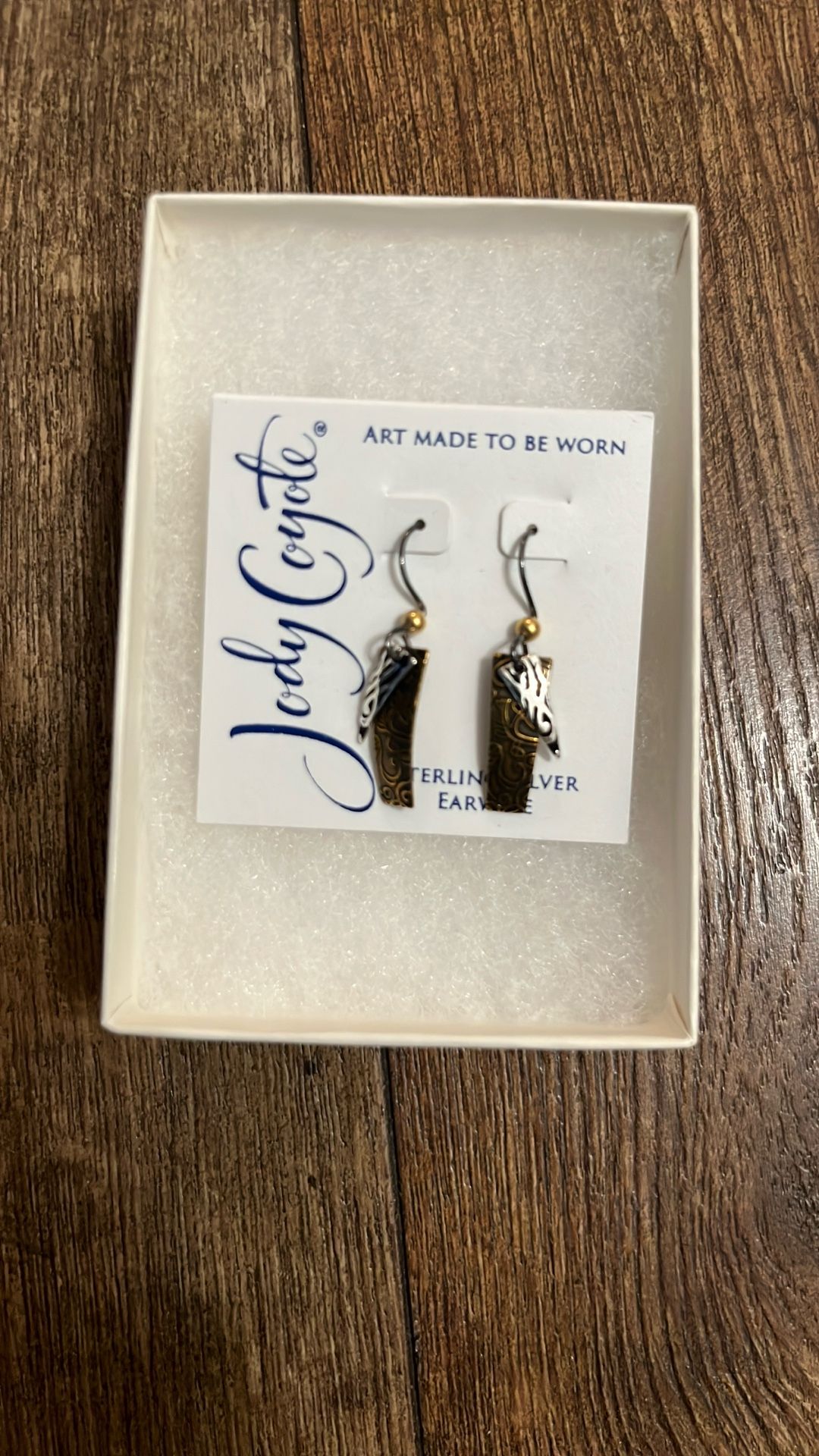 pair of Jody Coyote hammered sterling silver earrings.