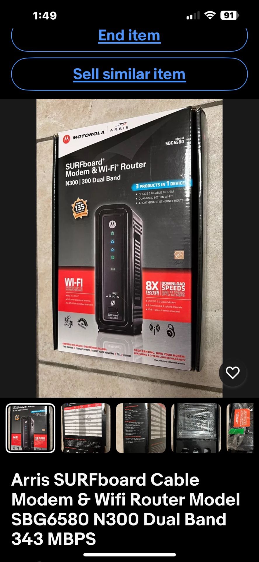 New Arris SURFboard Cable Modem & Wifi Router Model SBG6580 N300 Dual Band 343 MBPS $55