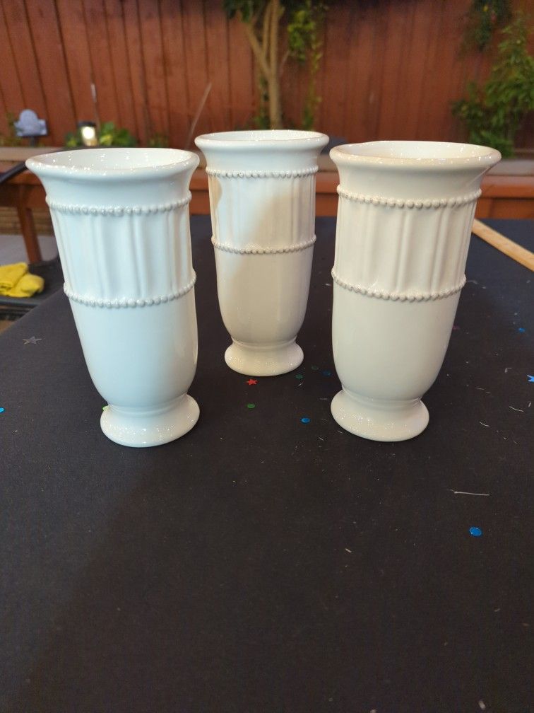 New, set of 3. Approx 7.5 inches high and 3.5 inch opening. For flowers. Pick up only. Glossy finish. 3 for $10.