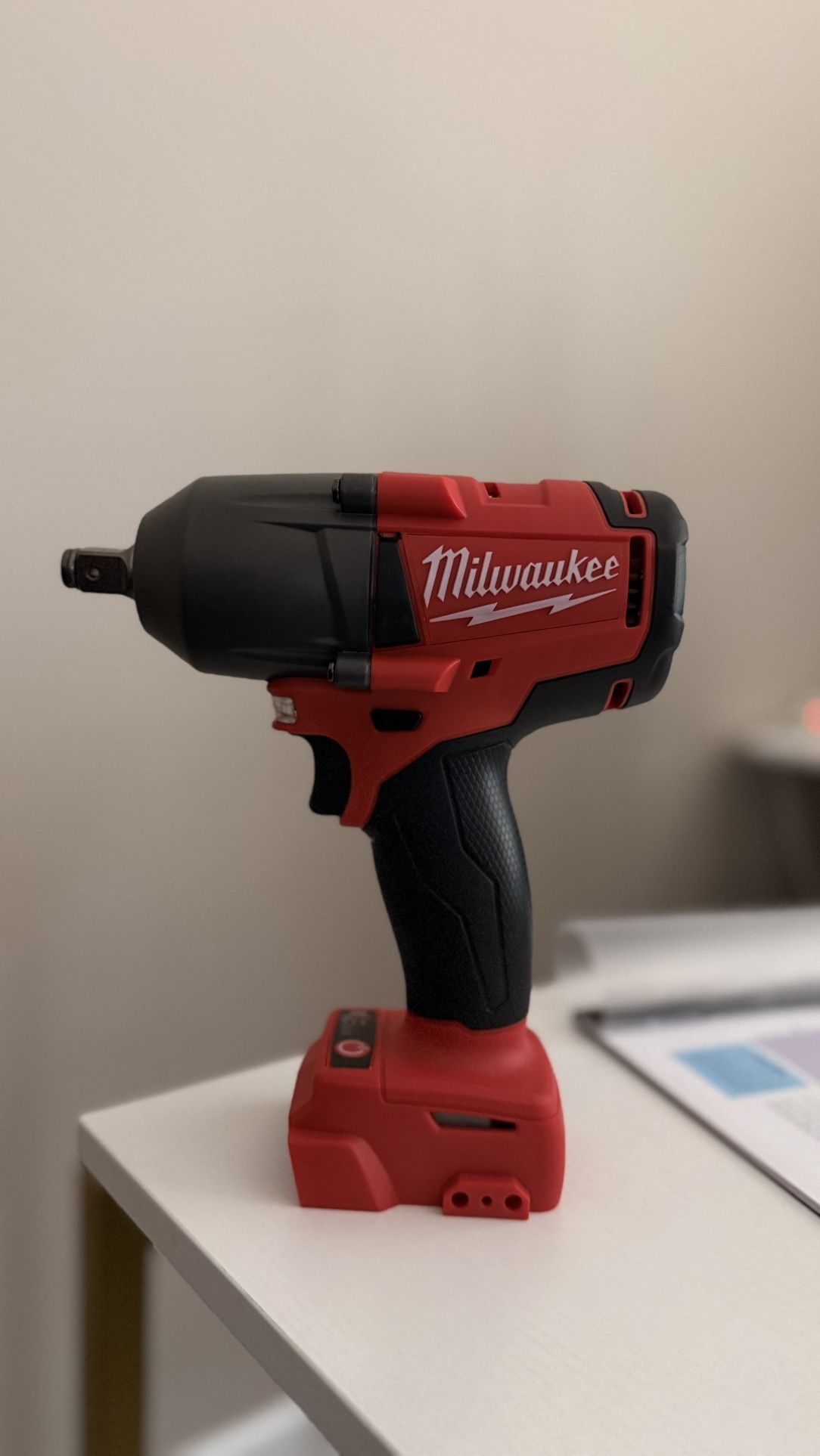 Cordless impact wrench, works good and has strong power. Good for tires, lug nuts, and tough bolts. Rated around 550 ft-lb tightening and up to about 650 ft-lb breakaway. Used, clean, and fully functional. Same one shown in the pictures. Tool only, no battery or charger. Local pickup only.