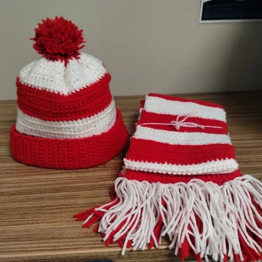 Handmade, crochet, washable, candy cane scarf, where's waldo, cat in the hat, 6ft length